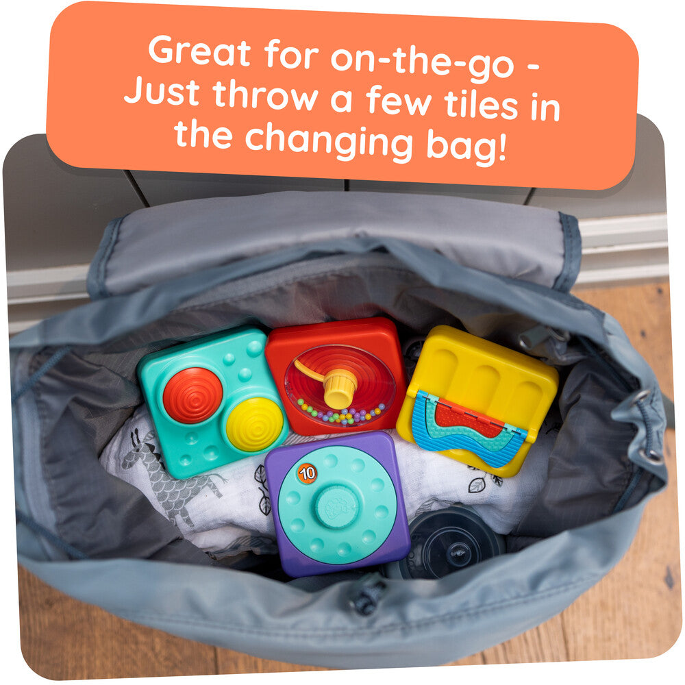 From car seats to cafés, Play Tab™ Essentials delivers calming, tactile play that builds fine motor skills and focus. Magnetic connections let little ones mix, match, and snap tiles together for creative layouts.